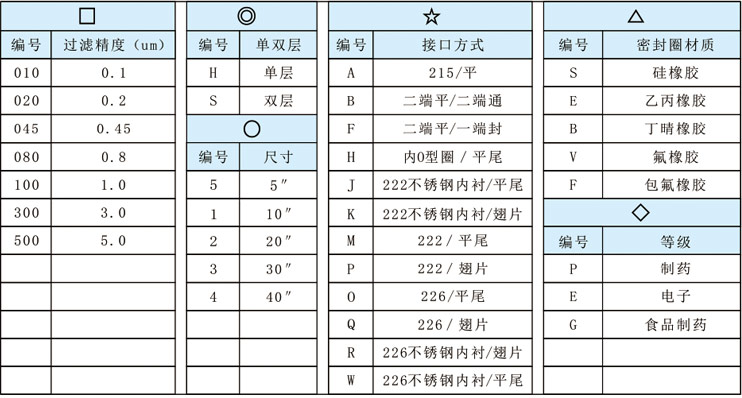 滤芯订购信息